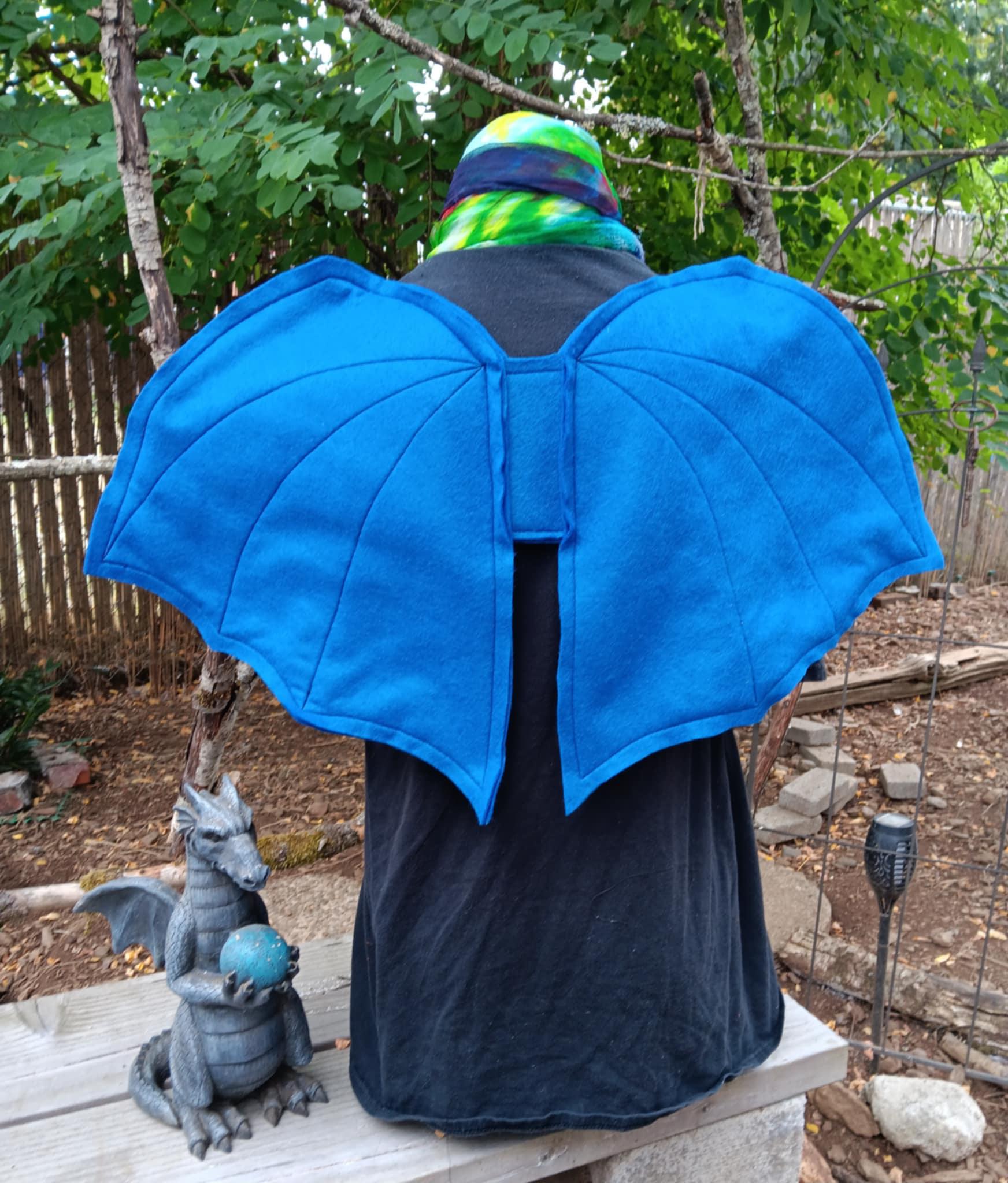 Dragon Wings Adult Size ~ Our super popular Dragon Wings sized for adults and teens! Made of soft and sturdy felt with elastic straps, our wings are comfortable and easy to wear. Designed, created and handmade by Groovy Moods. Allow up to 2 weeks for orders of 15 or more. Also available in kiddo sizes.