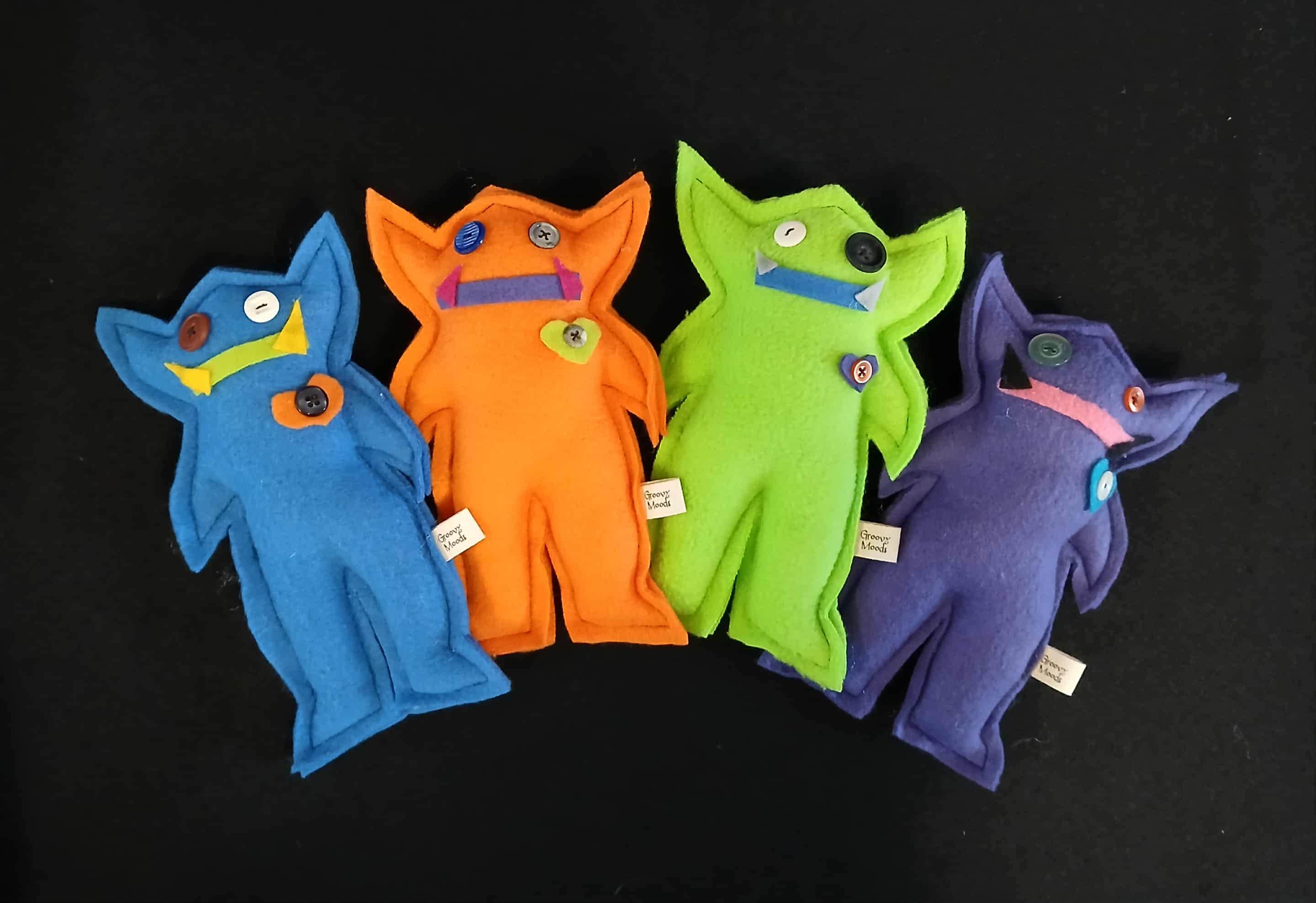 These adorable, super cuddly, Mama's Monsters are the first toy that we made at Groovy Moods. They are what started our business back in 2013 and they remain one of our favorite toys we make today. They are created with wonderfully soft fleece with whimsical button and felt details. Mama's Monsters are super popular with kiddos, teens and adults. They make terrific gifts!