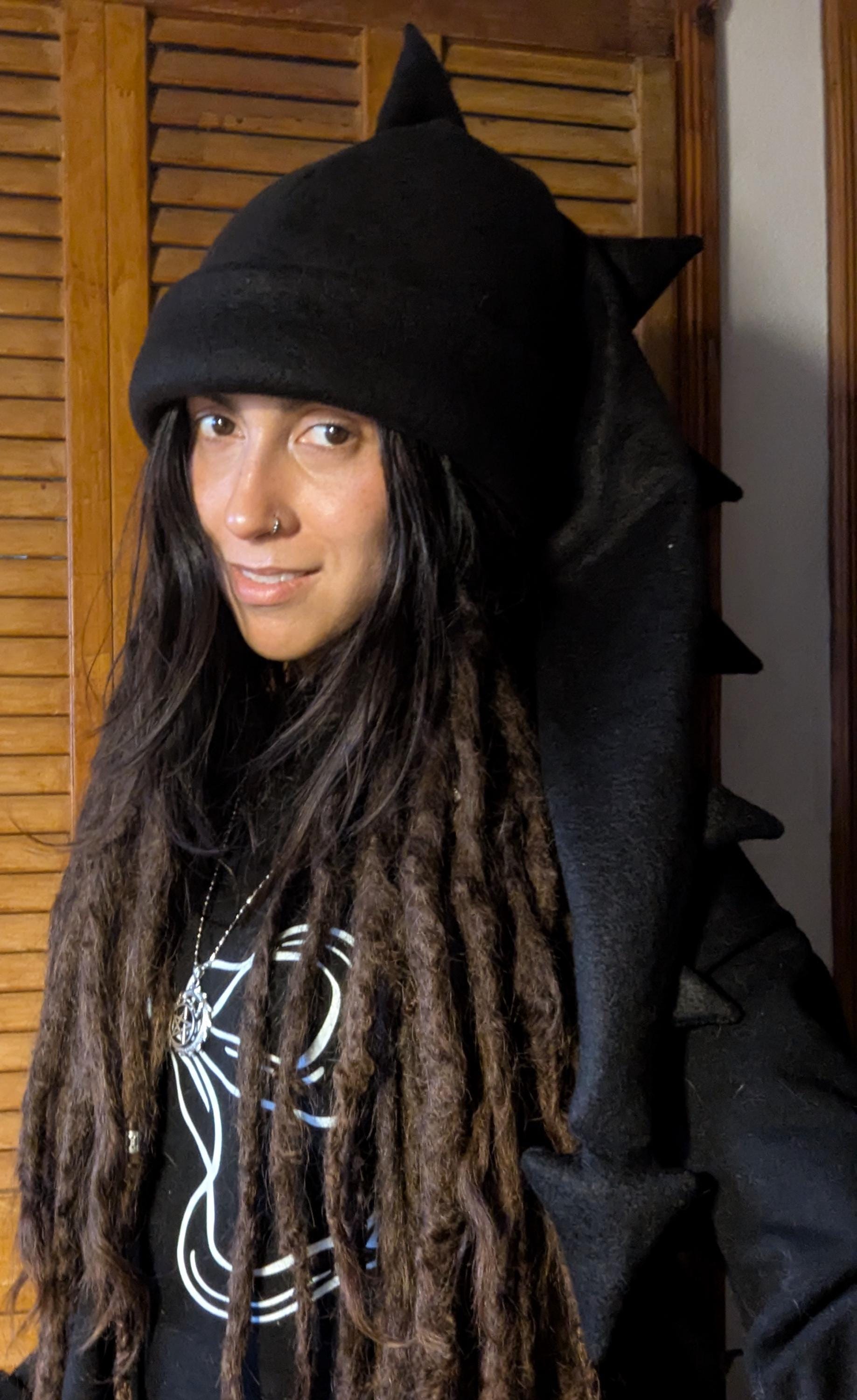These super fun, unique and soft, fleece Dragon Tail Hats are great fun to give and wear! They are all created and handmade by Groovy Moods. Each hat will have your choice of a black or white body with the band and spikes avaliable in red, pink, orange, yellow, green, blue, purple, black or white. Great for dragon lovers everywhere!