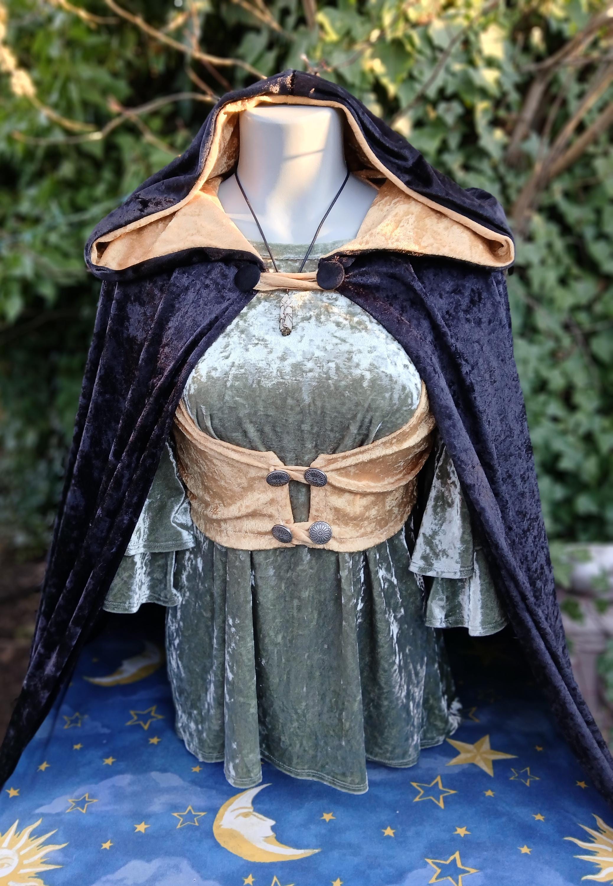 Our luxurious, Premium Velvet Cloaks are designed, created, patterned and hand made by the Groovy Moods Team. Each is made from super soft and comfortable black velvet panne with lined hoods in your choice of a variety of color linings. The unique loop closure will match the color of the the hood lining. Hood linings and closures are available in black, white, gold, purple, blue, green and red.