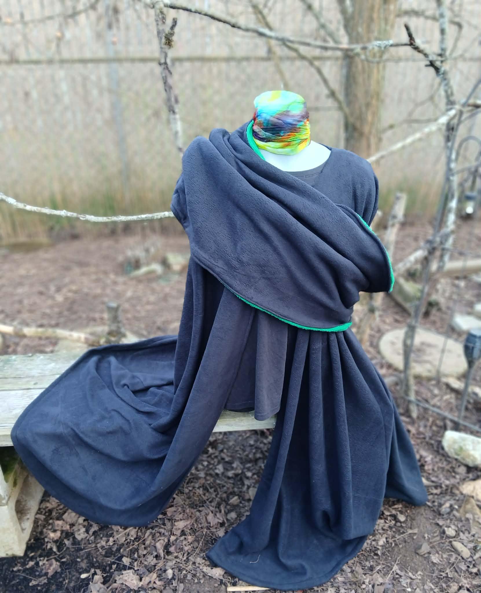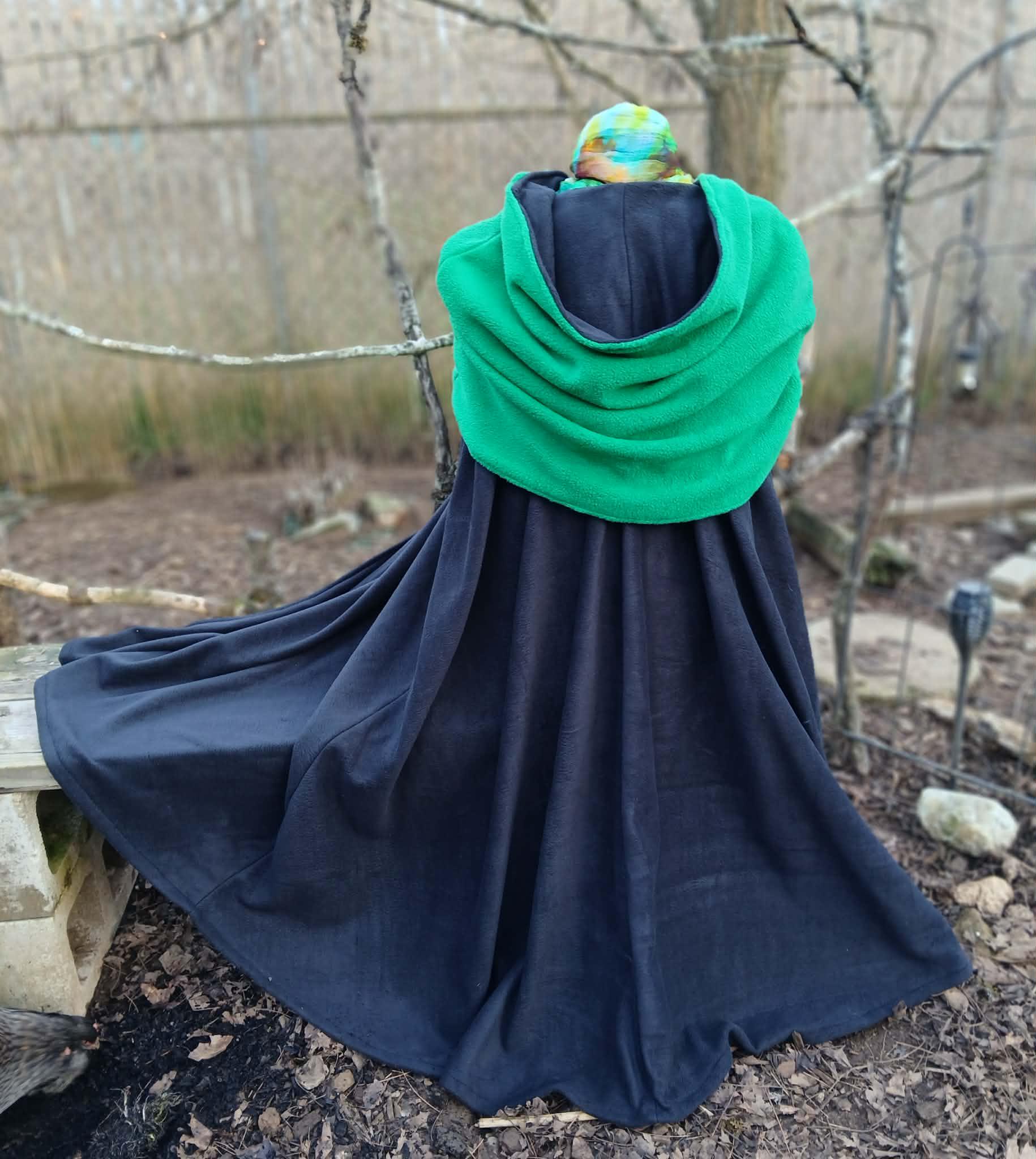 Our Cowl Hood Fleece Cloaks have a warm, soft reversible and removeable cowl hood that can be worn numerous ways. They are designed, created, patterned and hand made by the Groovy Moods Team. Each cloak is made from super soft, cozy and comfortable black fleece with the double thick cowl style hoods in your choice of a variety of colors with black as the reversible color. These lovely cowls can also be removed and worn without the cloak and the cloak can be worn without the cowl, making this set wonderfully versatile.