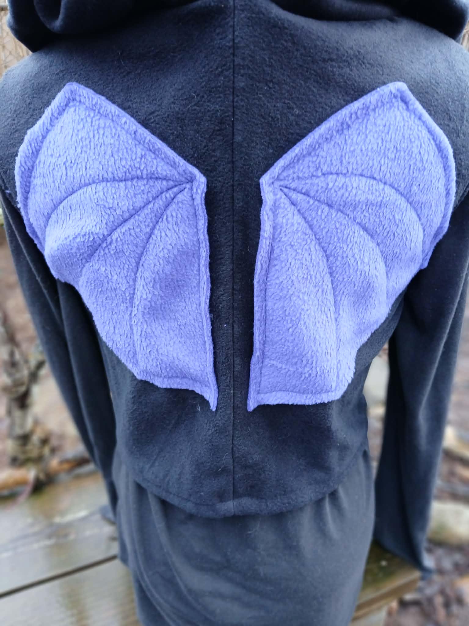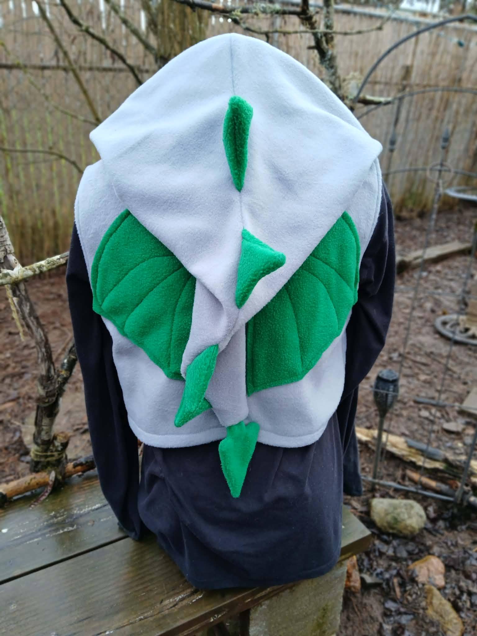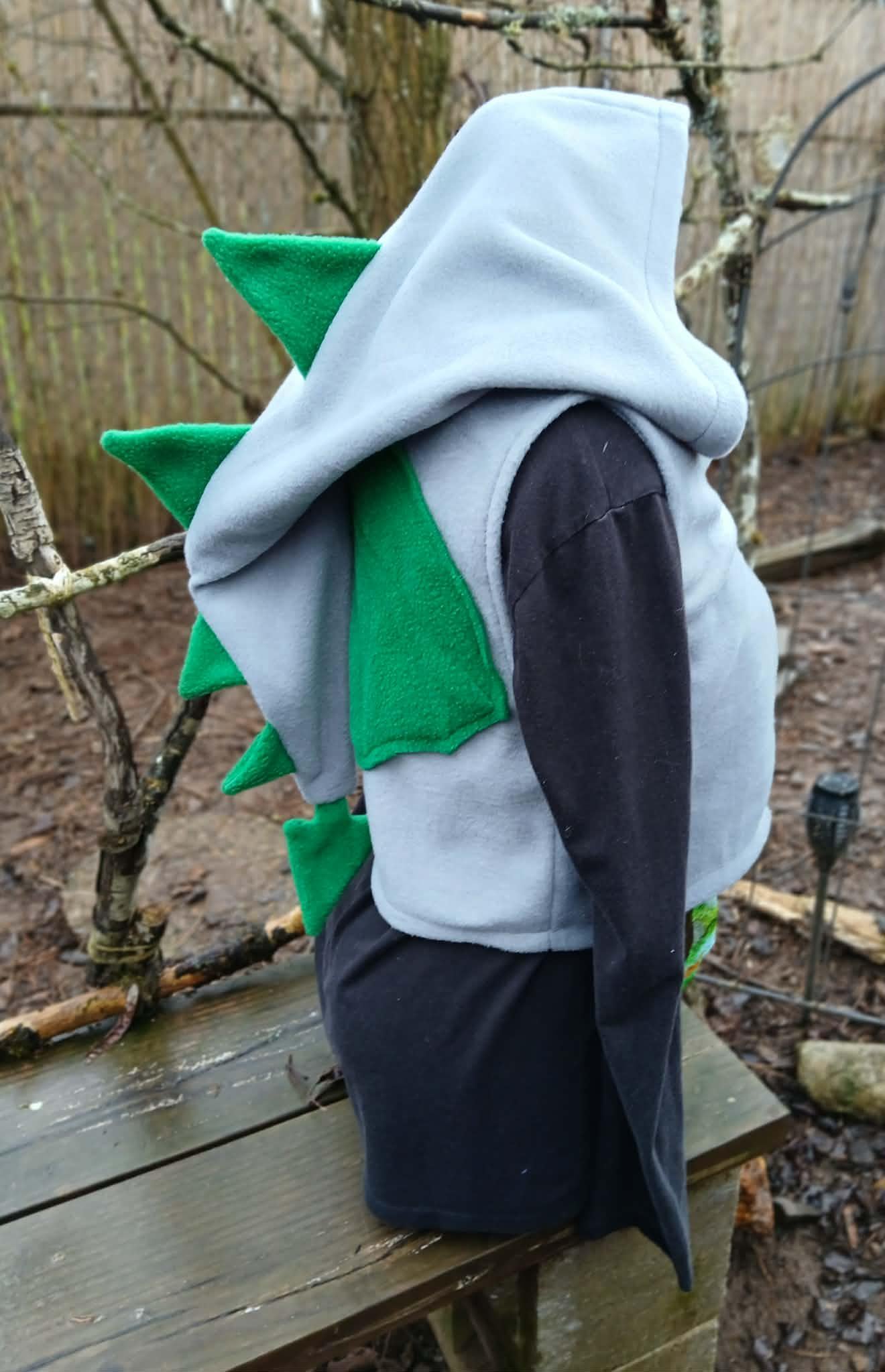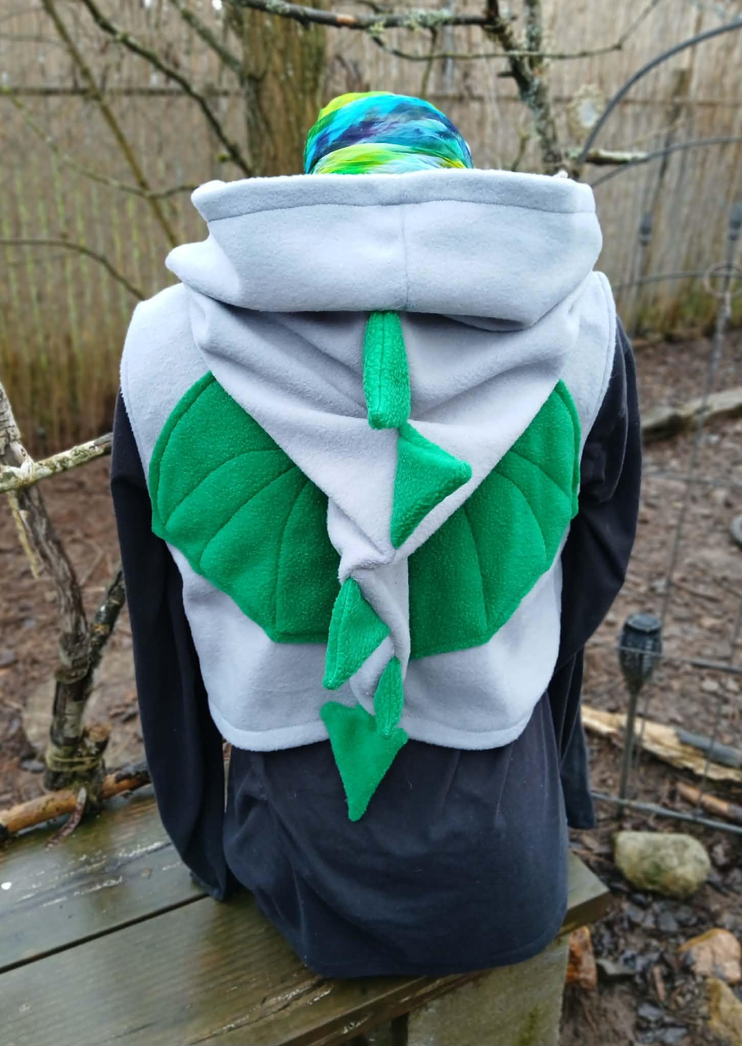 Dragon Vest featuring a Dragon Tail Hood, Dragon Wings and two button closing straps. Designed, created, hand patterned and handmade in super soft, comfy fleece by the Groovy Moods team. Perfect for cosplay and every day wear. One Size.