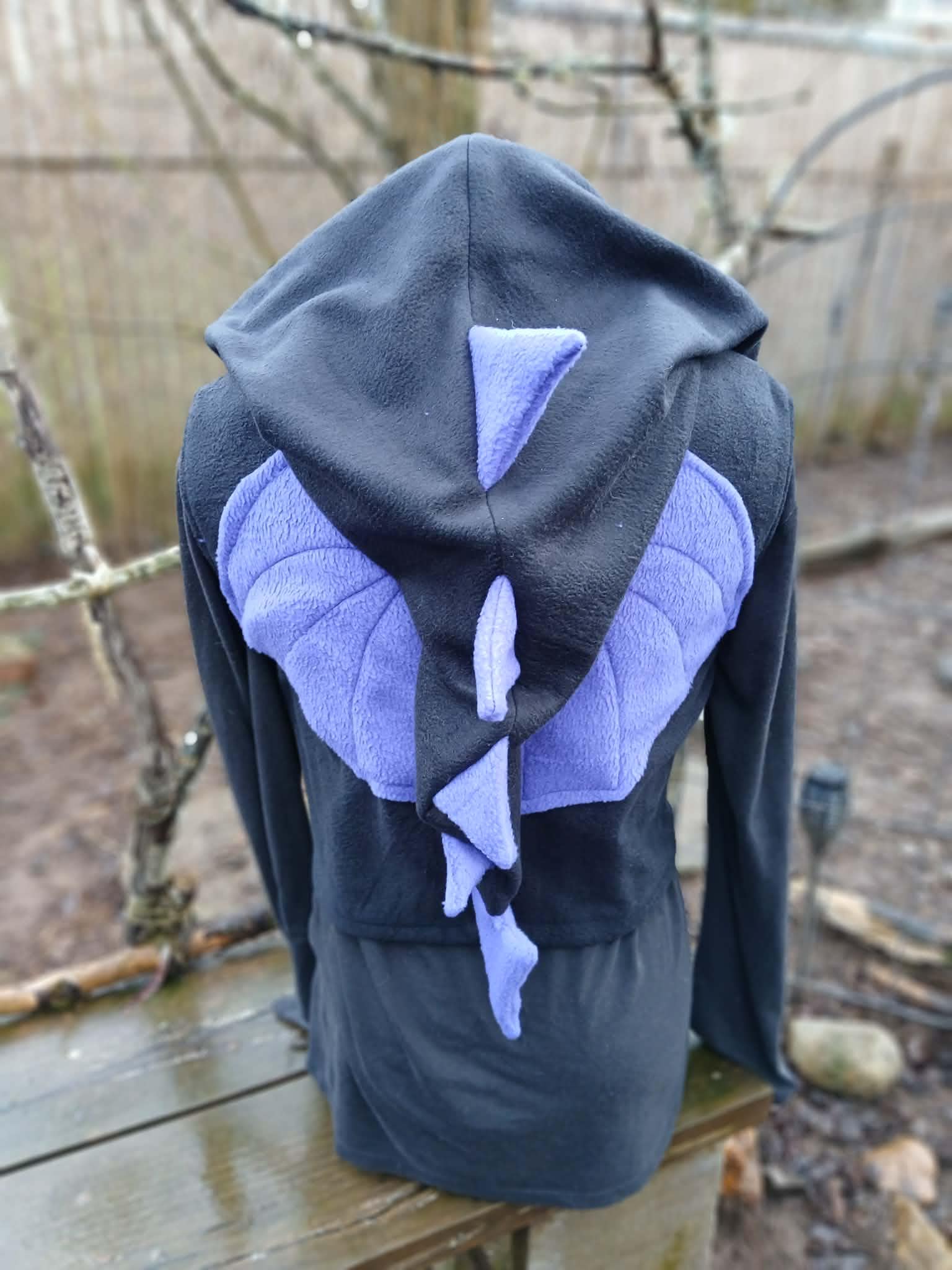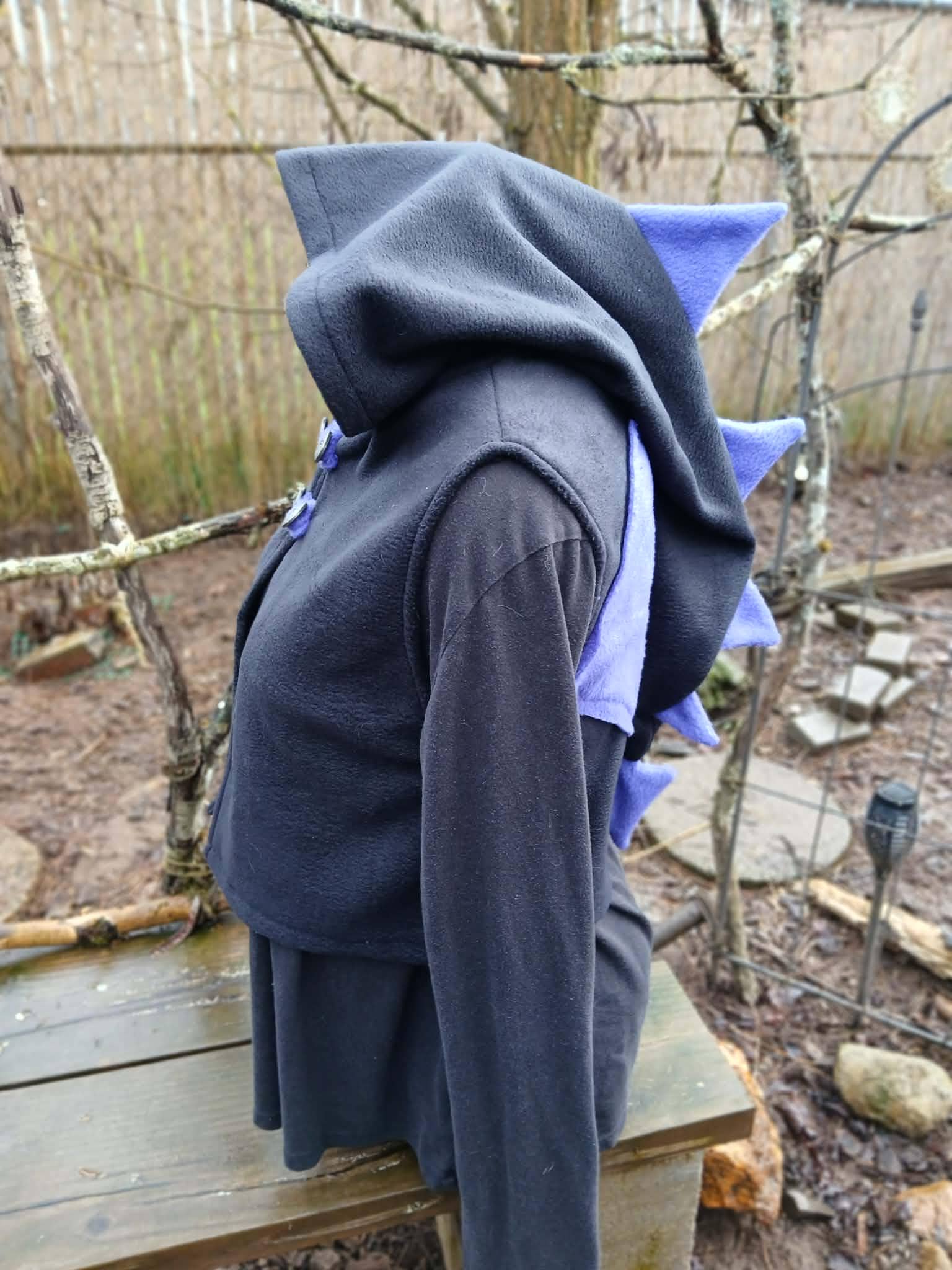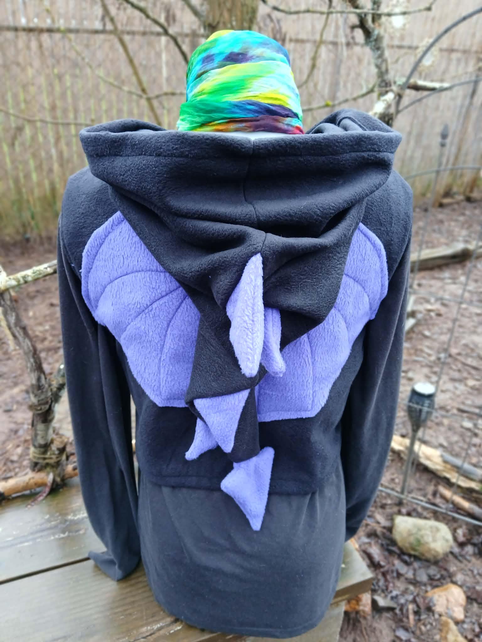 Dragon Vest featuring a Dragon Tail Hood, Dragon Wings and two button closing straps. Designed, created, hand patterned and handmade in super soft, comfy fleece by the Groovy Moods team. Perfect for cosplay and every day wear. One Size.