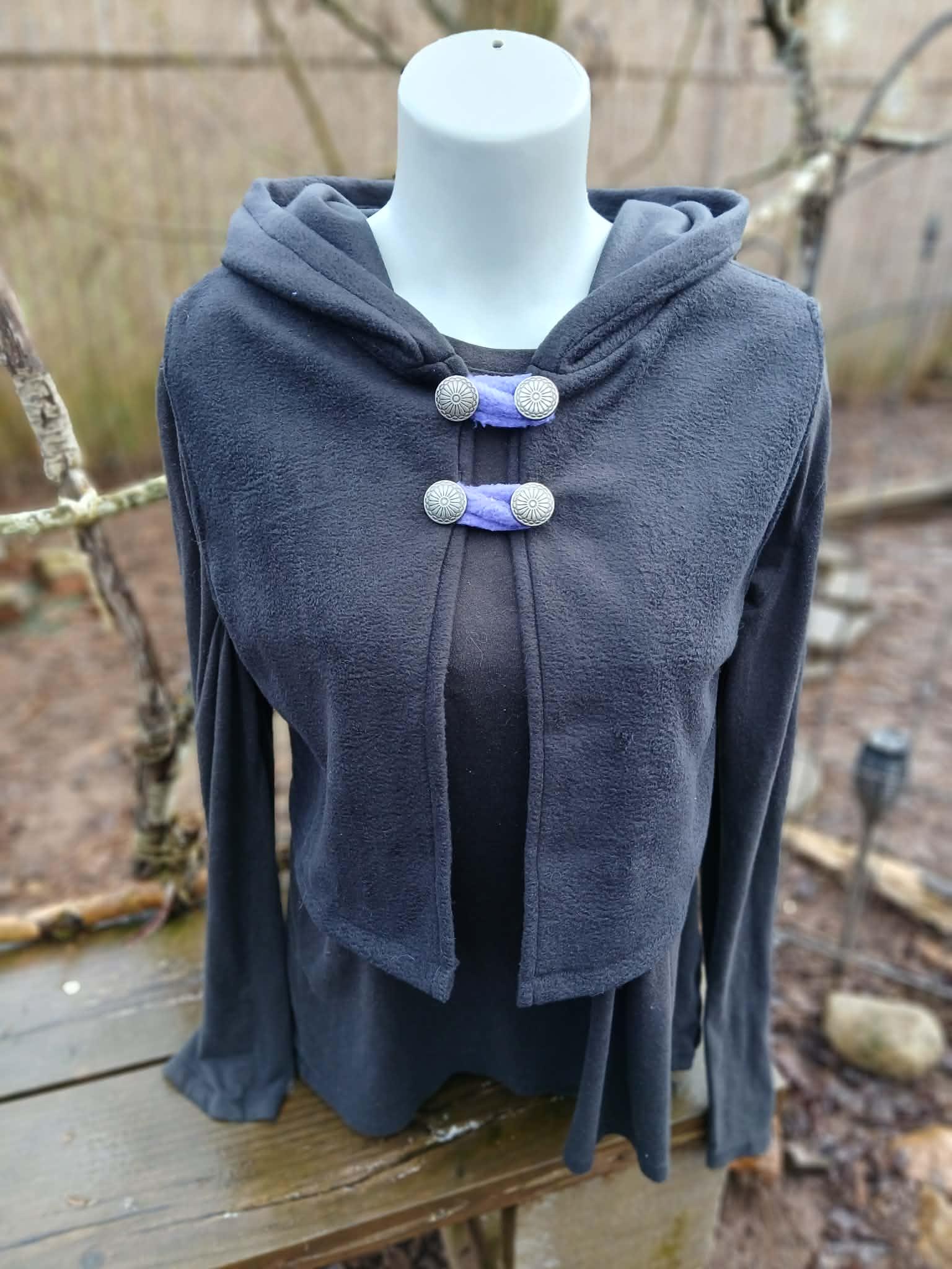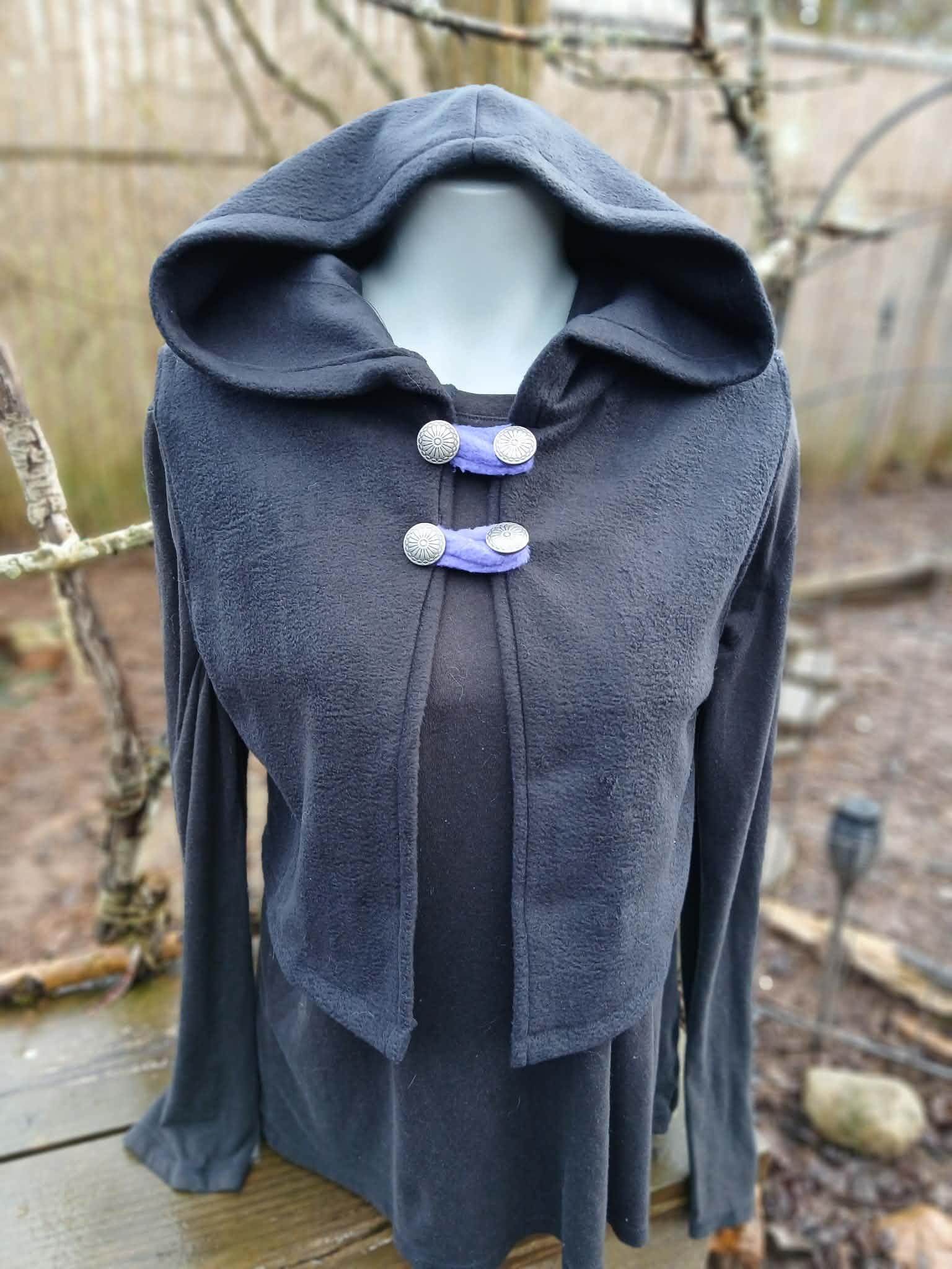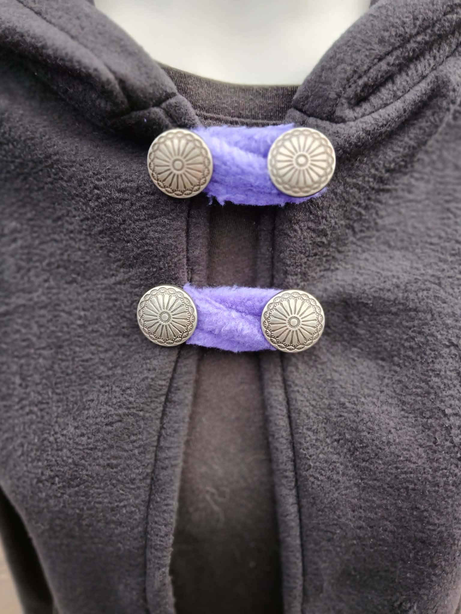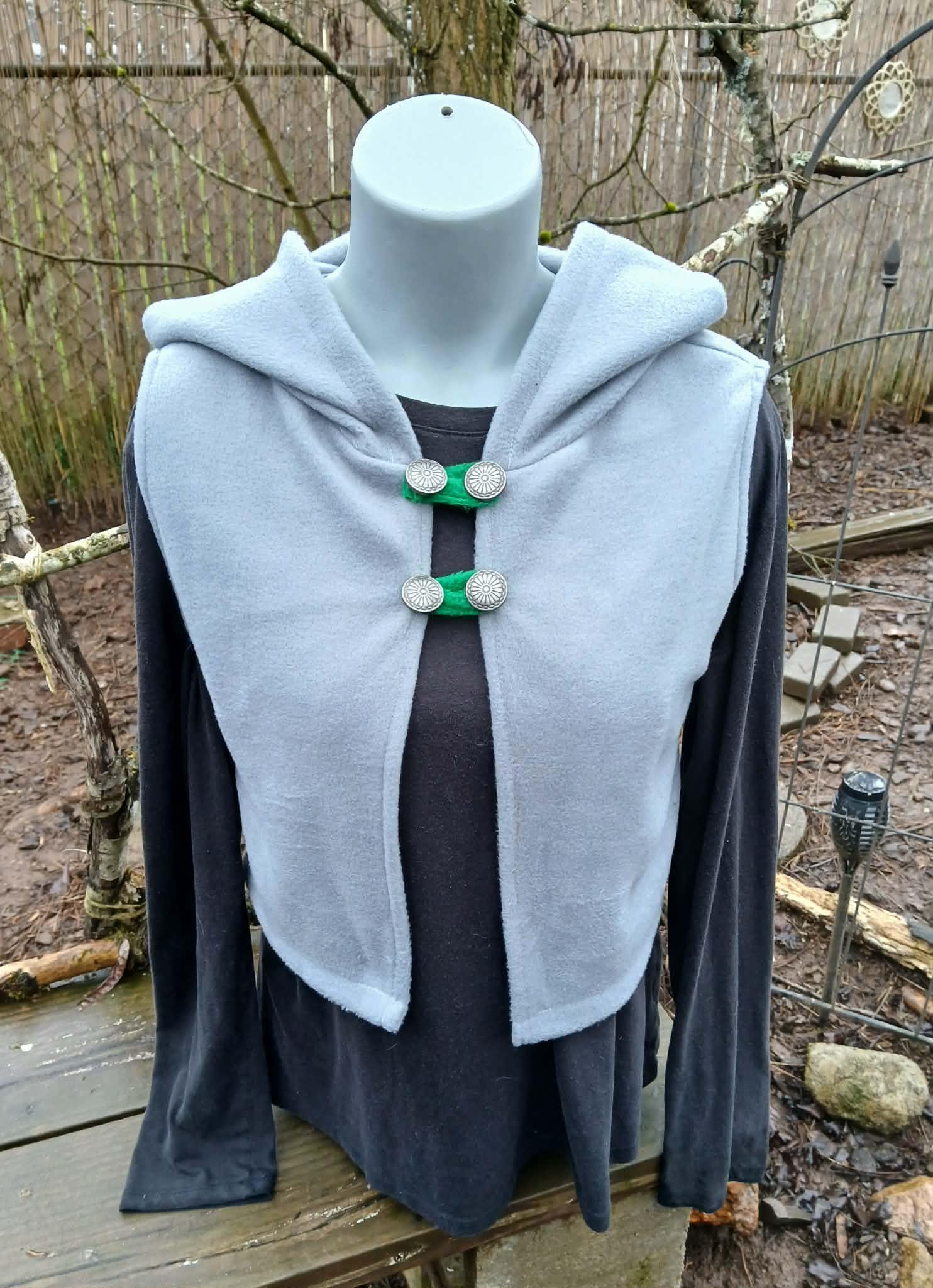 Dragon Vest featuring a Dragon Tail Hood, Dragon Wings and two button closing straps. Designed, created, hand patterned and handmade in super soft, comfy fleece by the Groovy Moods team. Perfect for cosplay and every day wear. One Size.