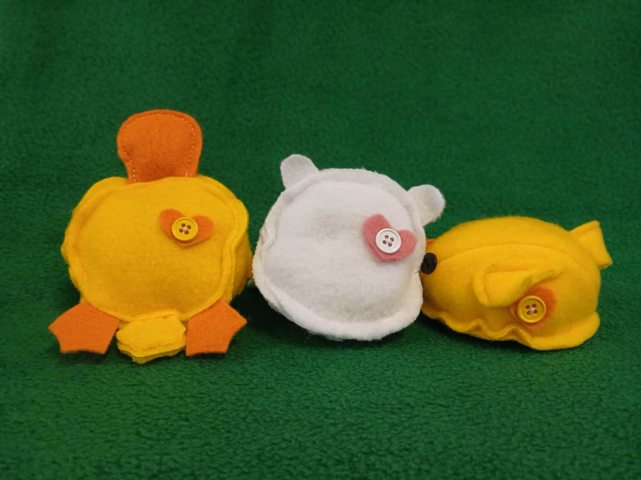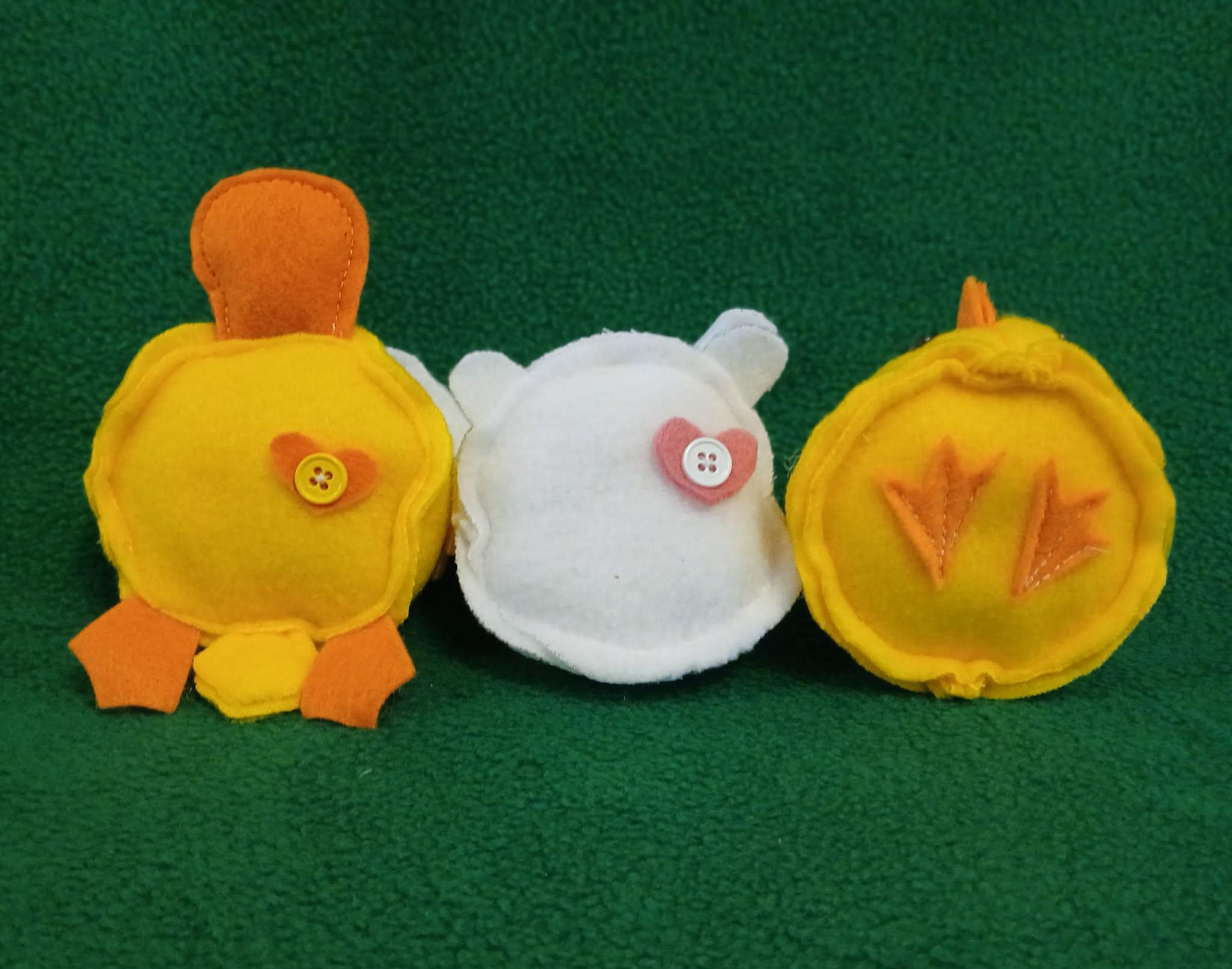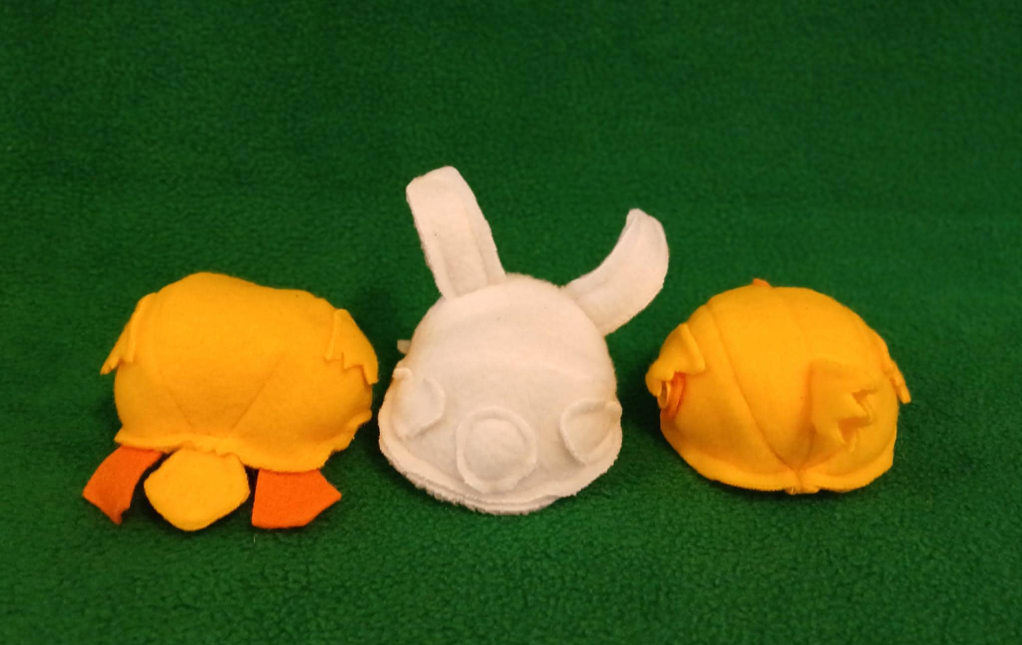 Perfect, little Easter Basket Stuffies! From our Roundies line of toys, these cuties are perfect for tucking into Easter Baskets or just for giving to kiddos and adults alike. Choose from Chick, Bunny or Duck. Each is designed, created and handmade from soft fleece with felt accents and will feature button eyes and a heart on every one. Filled with squishy polyfil.