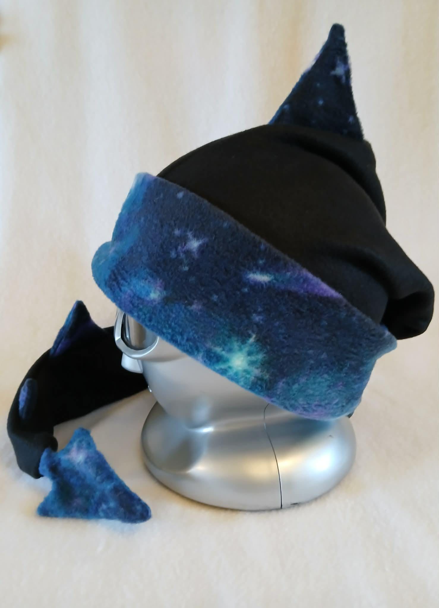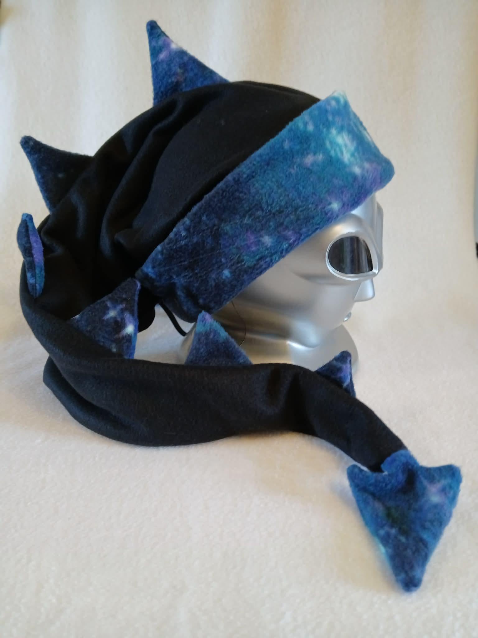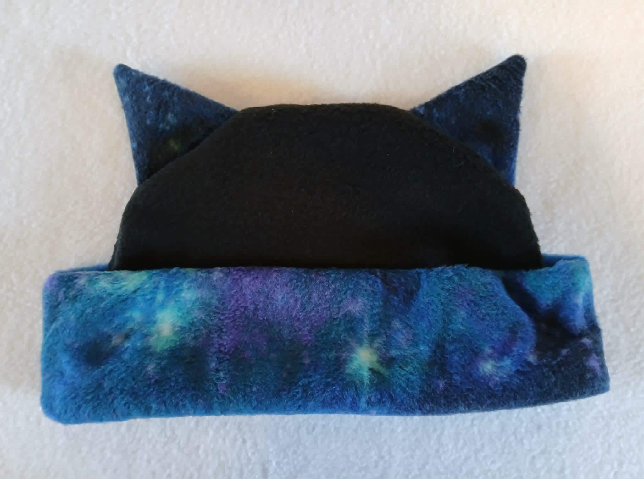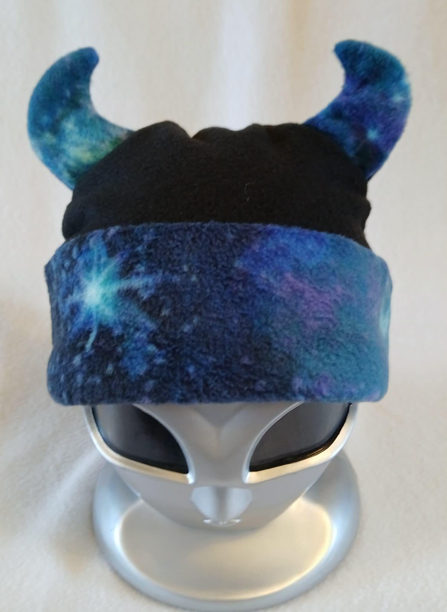 Limited Edition! These great hats feature galaxy print fleece accents with black, fleece bodies. They are all soft, stretchy and super comfortable. Choose from Dragon Tail, Cat Ear and Horned Hat styles. Designed, created and completely handmade by Groovy Moods.