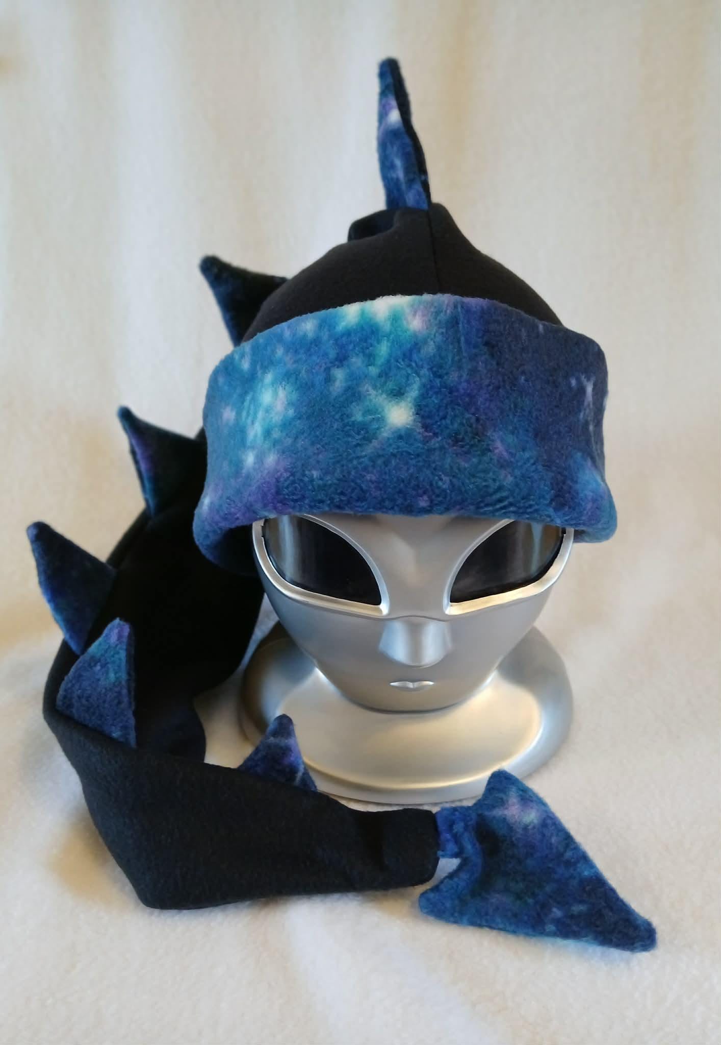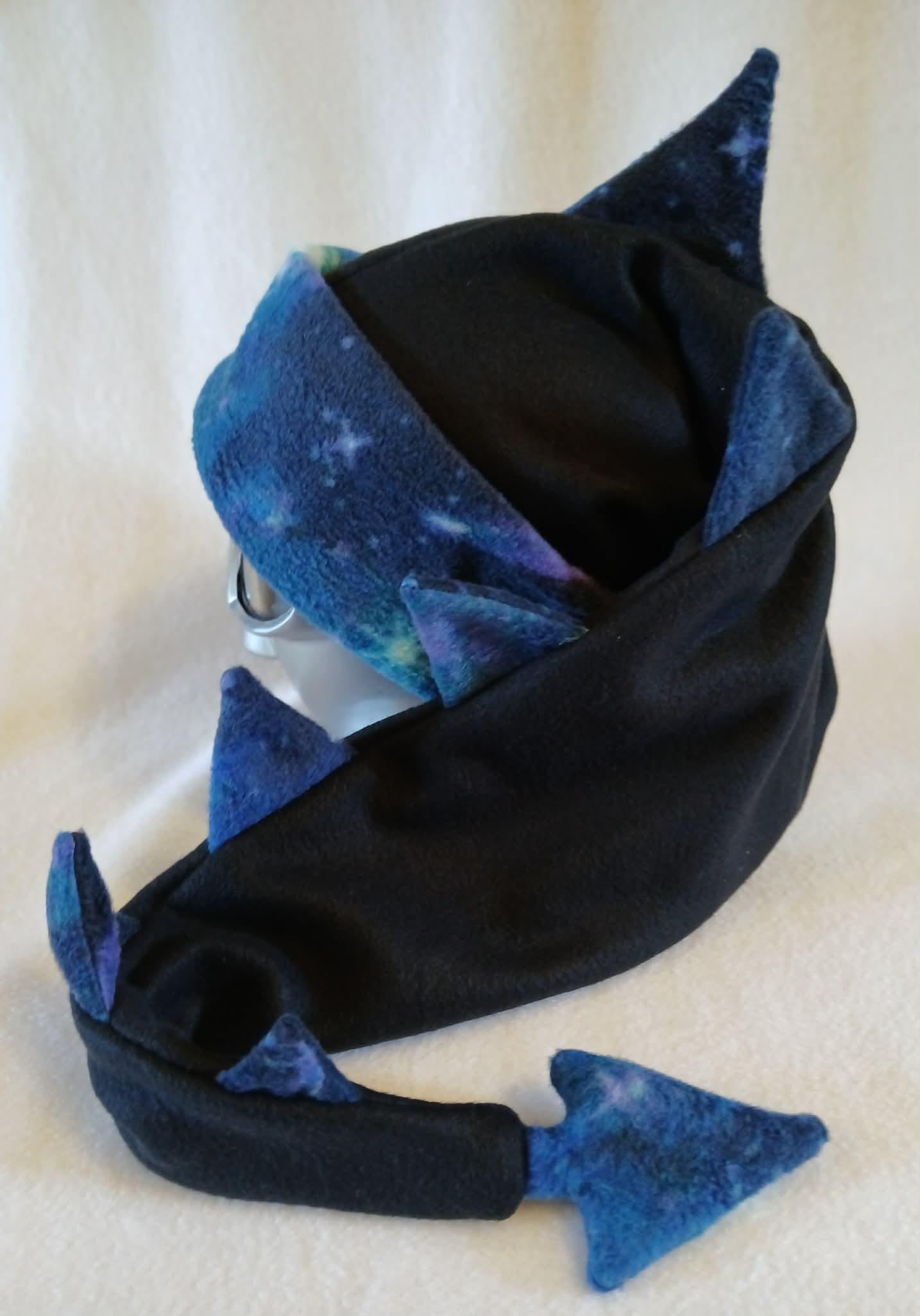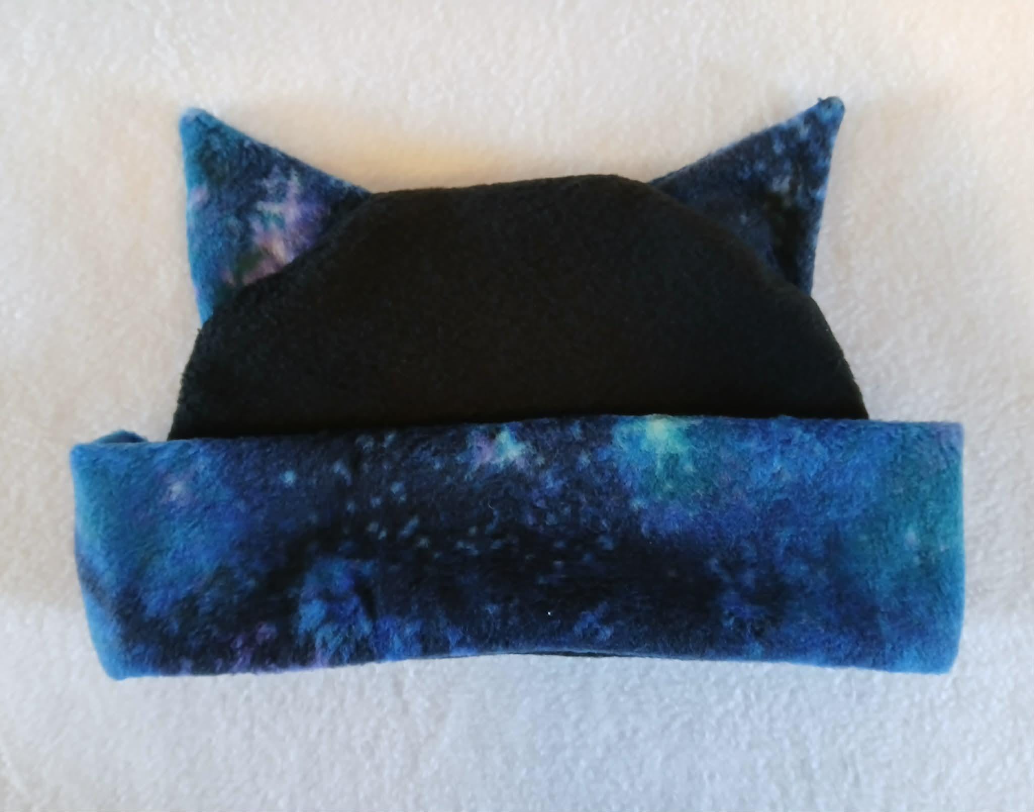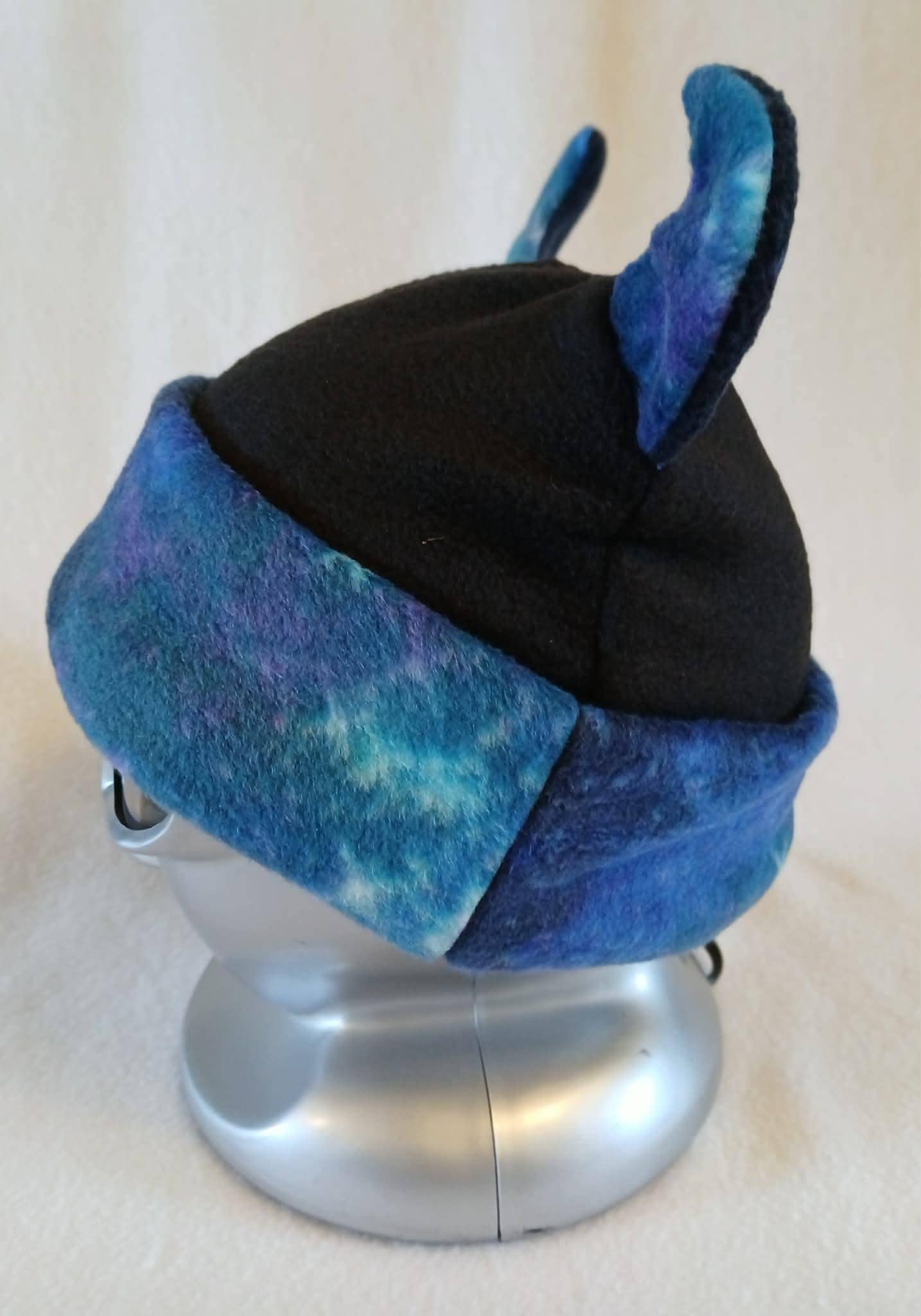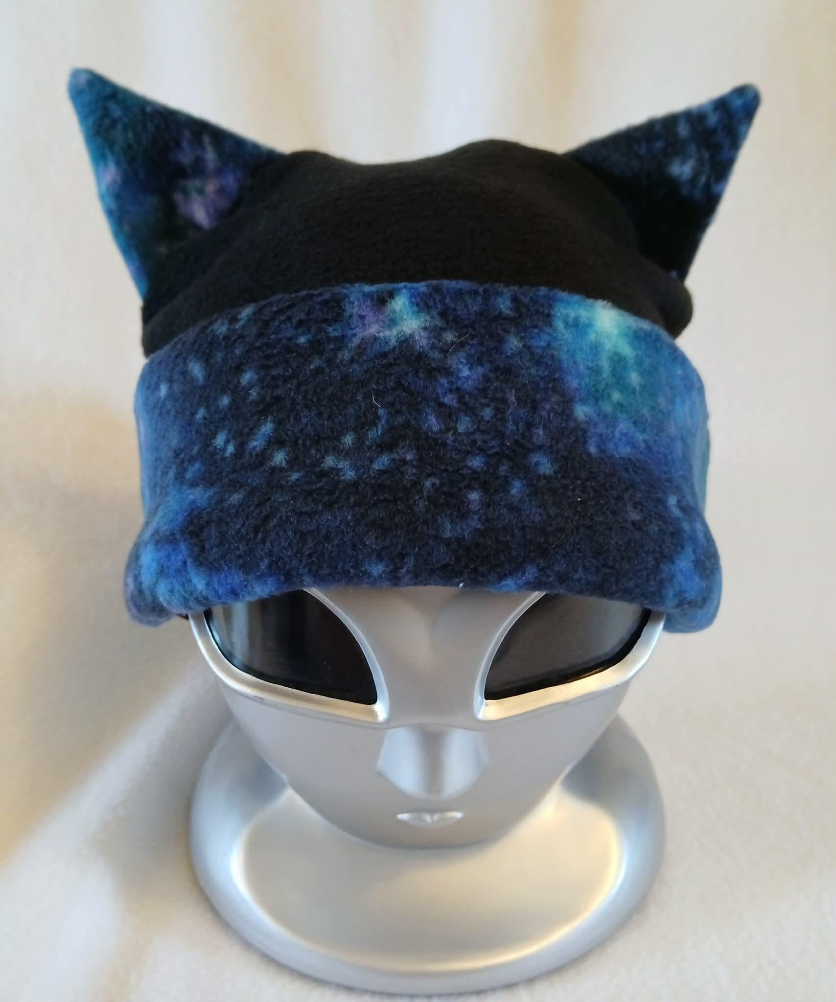 Limited Edition! These great hats feature galaxy print fleece accents with black, fleece bodies. They are all soft, stretchy and super comfortable. Choose from Dragon Tail, Cat Ear and Horned Hat styles. Designed, created and completely handmade by Groovy Moods.