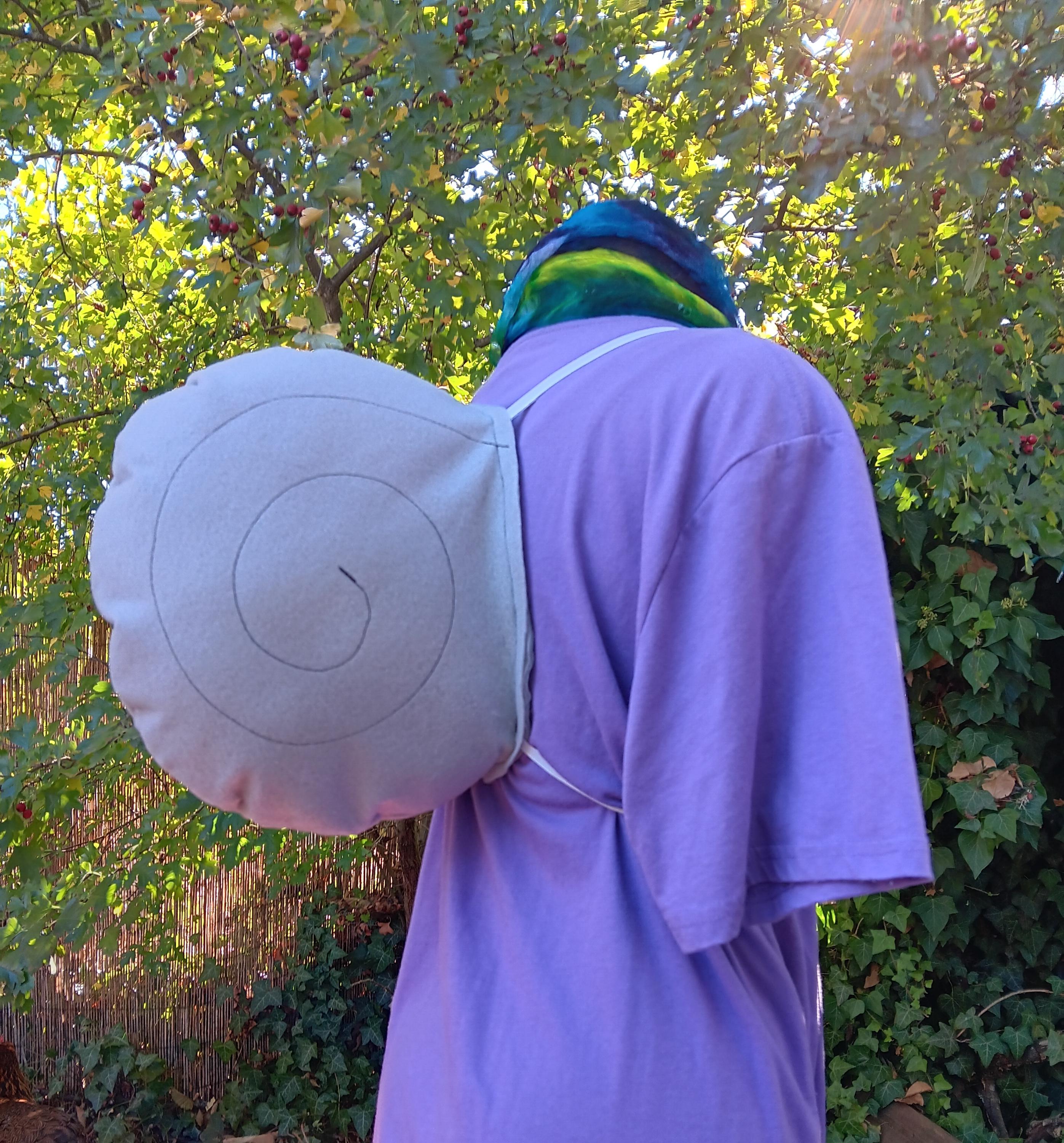 Snail Shells are part of our Whimsical Wearables from our Magical Make Believe line of toys. Available in tan, grey, pink, purple orange and blue, our Snail Shells also have an oversized pocket for carrying small treasures. (Not a backpack)